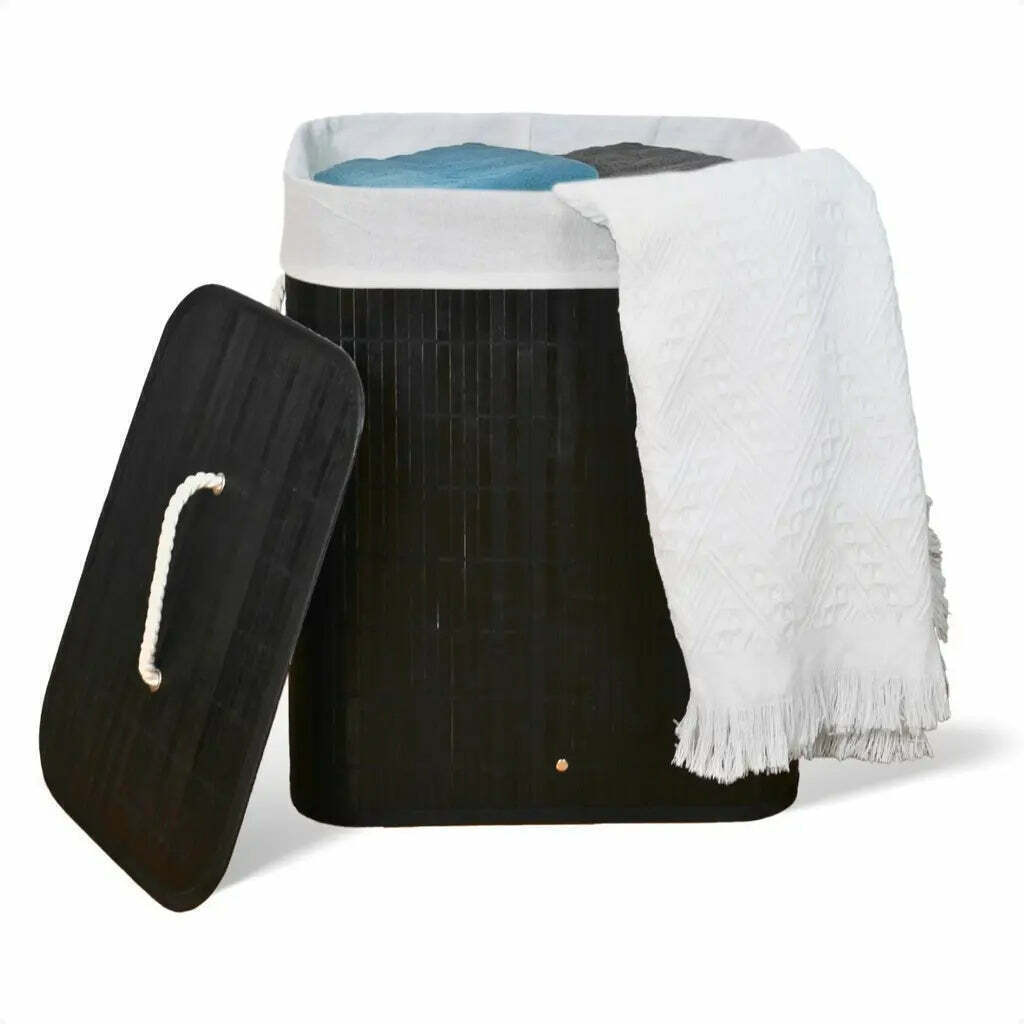 CESTO ORGANIZADOR DE BAMBU 50 LITROS COM TAMPA PARA ROUPAS - KONTUZ