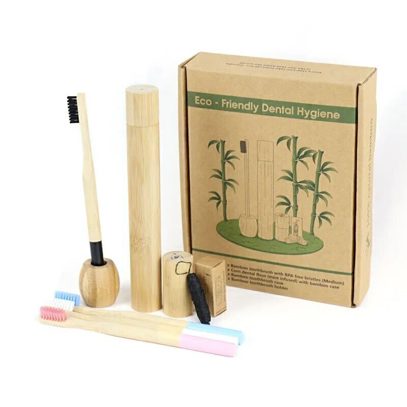 Introdução: Mantenha sua família com um sorriso saudável e sustentável durante as viagens com nosso Conjunto de Viagem de Bambu. Composto por uma escova de dentes de bambu e refis de fio dental, este kit é a escolha perfeita para cuidados bucais ecológicos em movimento.