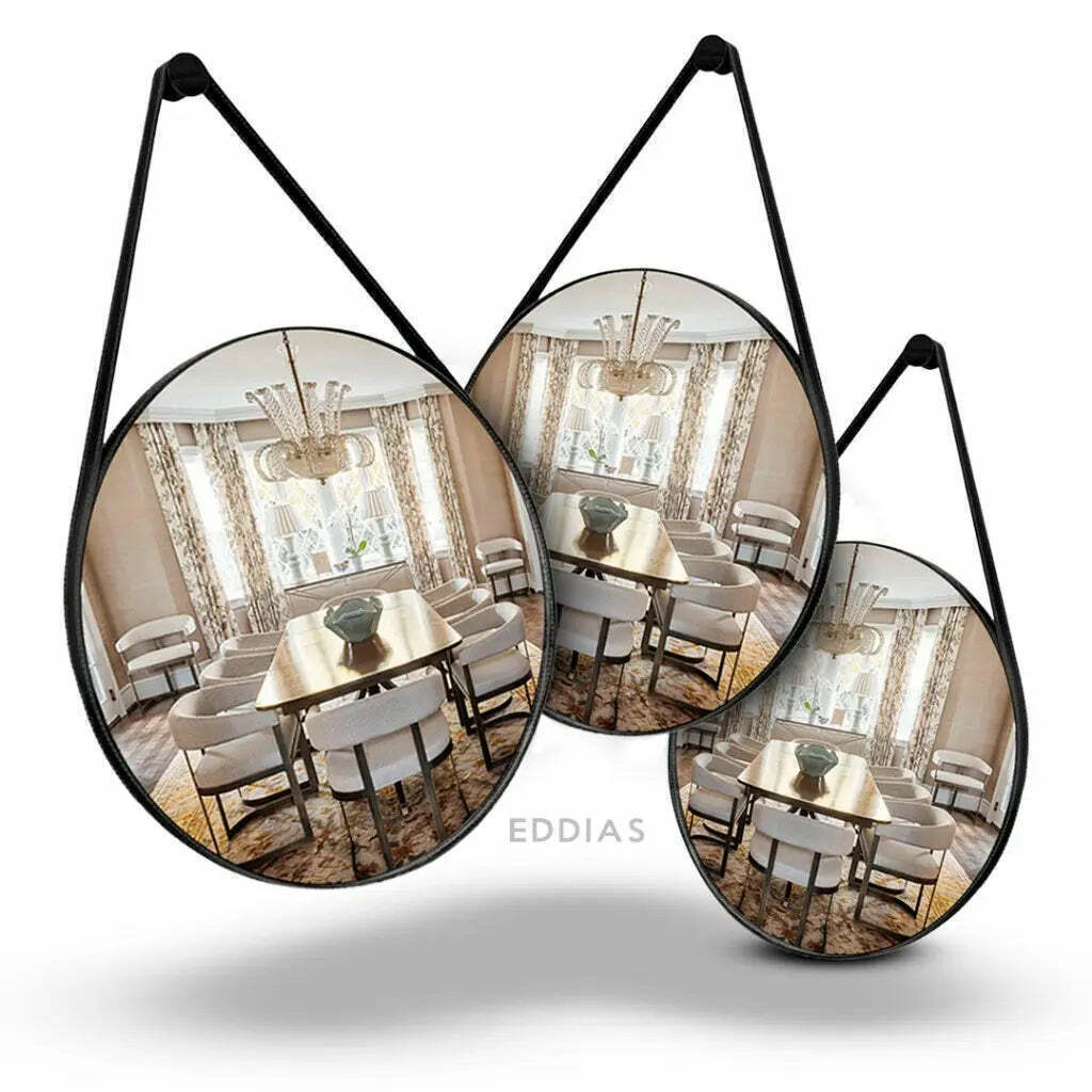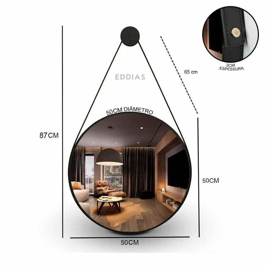 Espelho Redondo Adnet Decorativo com Alça em Couro - 60cm - Artesanal e Elegante