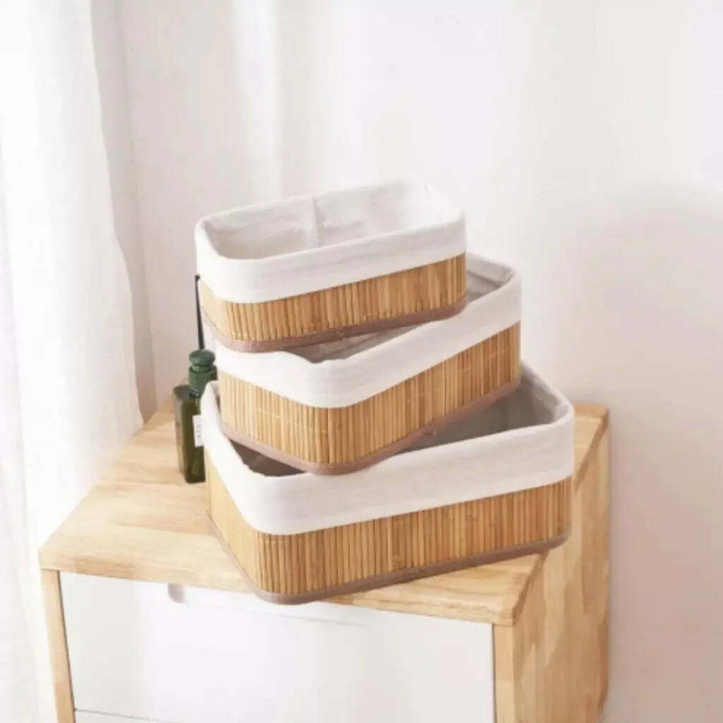 Kit 3 Cestos Organizadores de Bambu Multiuso com Forro