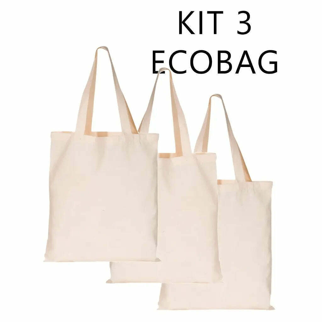 Ecobag kit com 3 sacola ecológica Lisa - 100% algodão cru