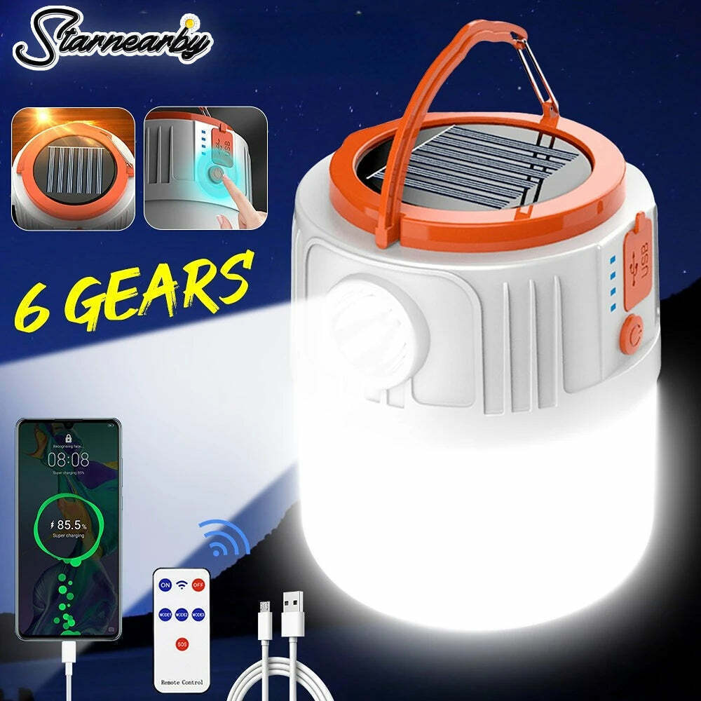 Esta lanterna de acampamento não é apenas uma ferramenta prática para atividades ao ar livre, mas também uma escolha eficiente e versátil. Ideal para camping, emergências e uso ao ar livre, esta lâmpada solar recarregável oferece 6 engrenagens de iluminação e um controle remoto, tornando-a uma solução de iluminação conveniente e confiável para suas aventuras.