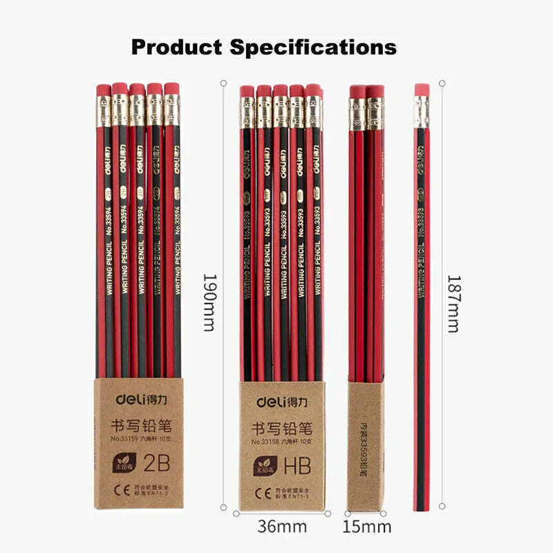 Escrita e Desenho com Conforto e Praticidade Eleve sua experiência de escrita e desenho com nosso conjunto de 10 Lápis de Madeira Deli, disponíveis em HB e 2B. Com borrachas integradas, são perfeitos para estudantes e uso diário em escritórios.