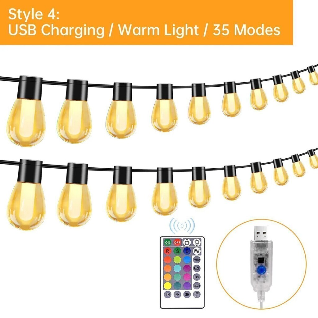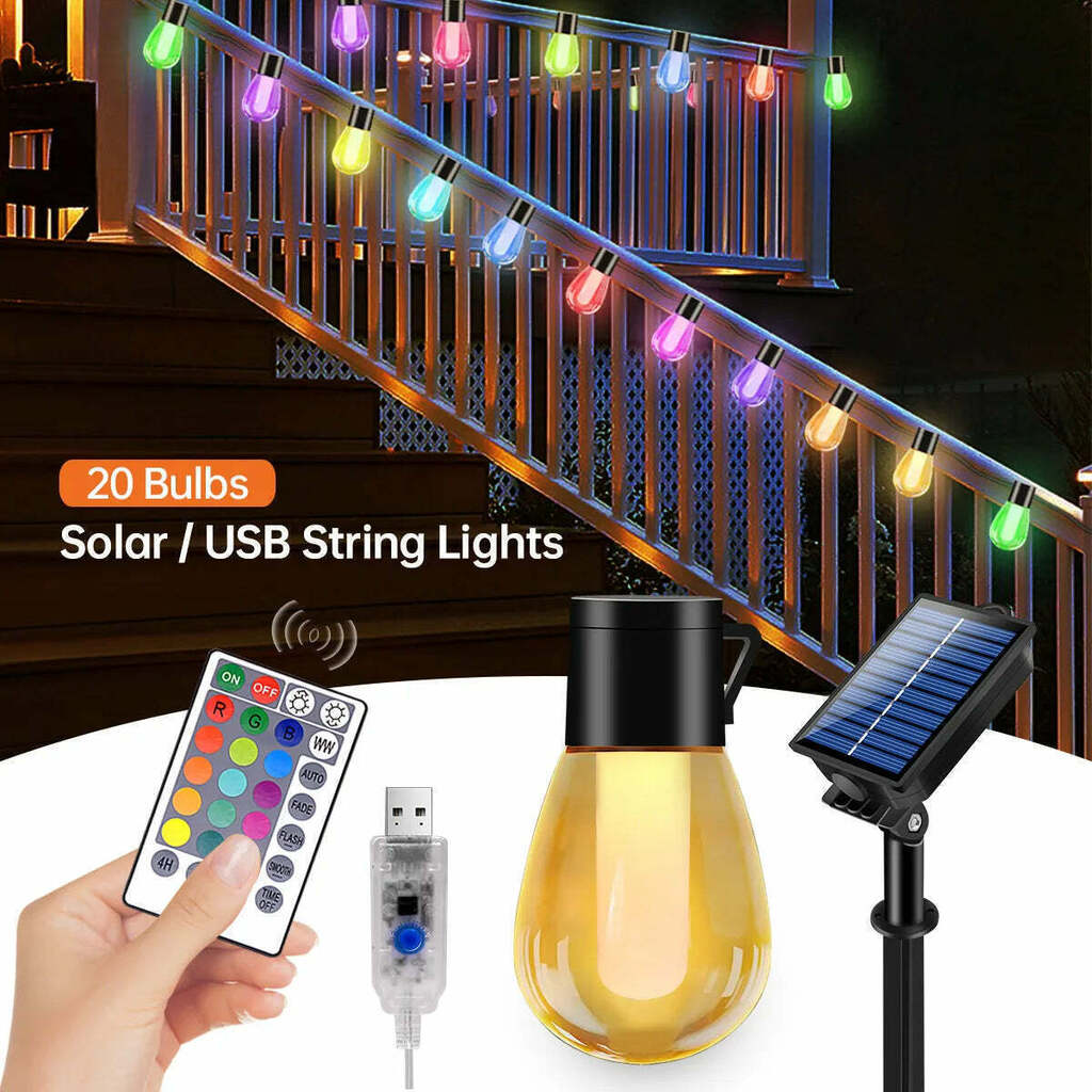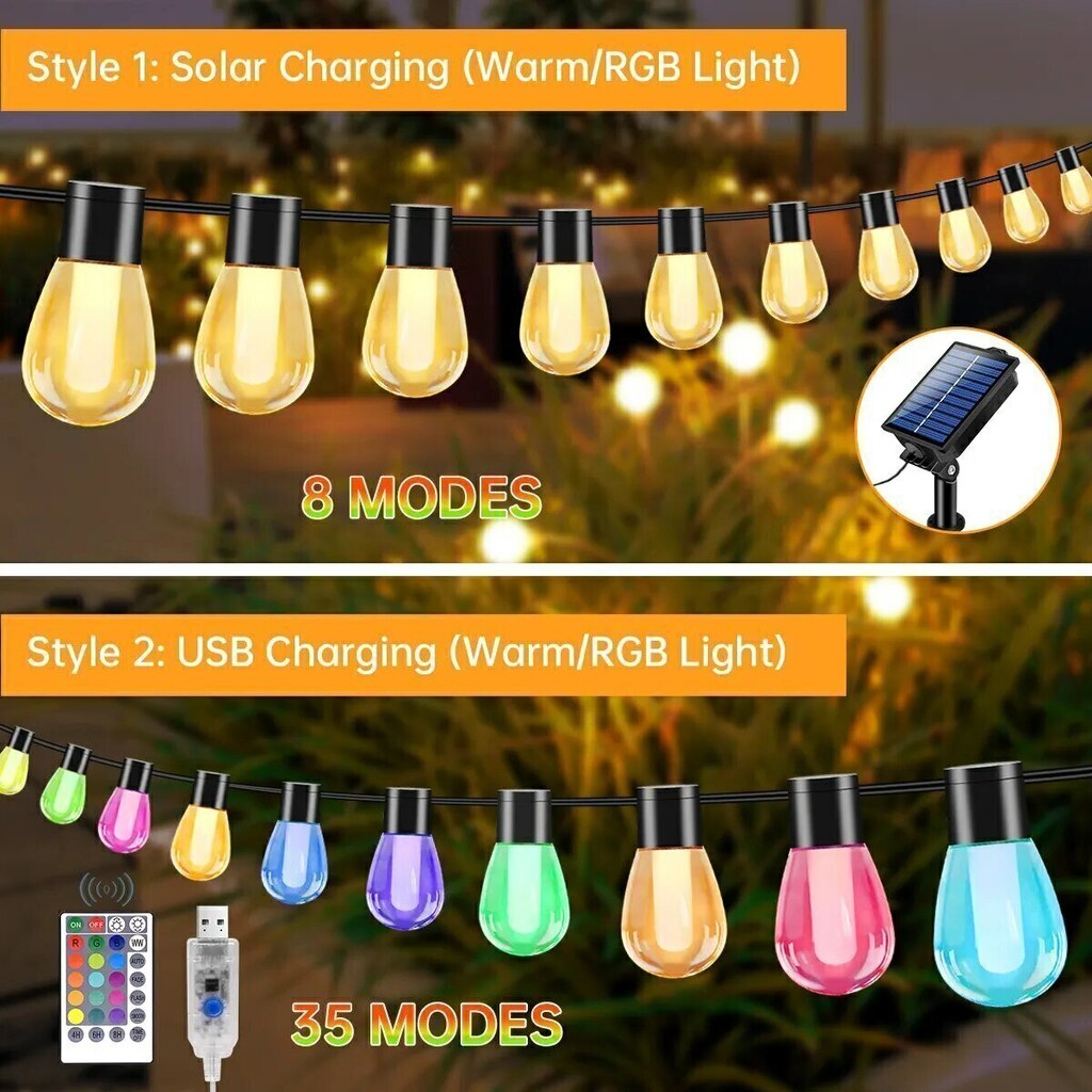 Introdução: Ilumine as suas noites ao ar livre de maneira elegante e eficiente com as Luzes de Fio Solar para Ambientes Externos. Estas lâmpadas LED Edison S14 à prova de quebra não apenas proporcionam uma iluminação encantadora, mas também são carregáveis por USB, à prova d'água e oferecem diversos modos com controle remoto.