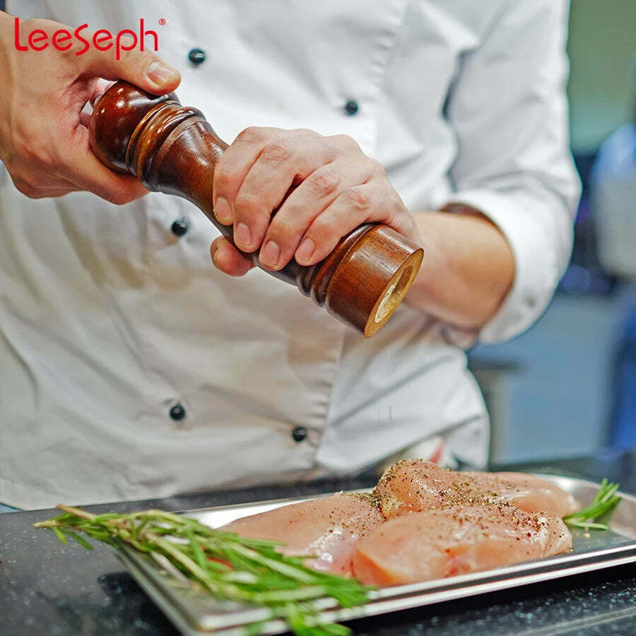 Eleve Sua Experiência Culinária com Ferramentas de Qualidade! Adquira seus Moinhos de Sal e Pimenta Leeseph em Madeira Sólida hoje e desfrute de uma moagem precisa e um estilo elegante em sua cozinha!