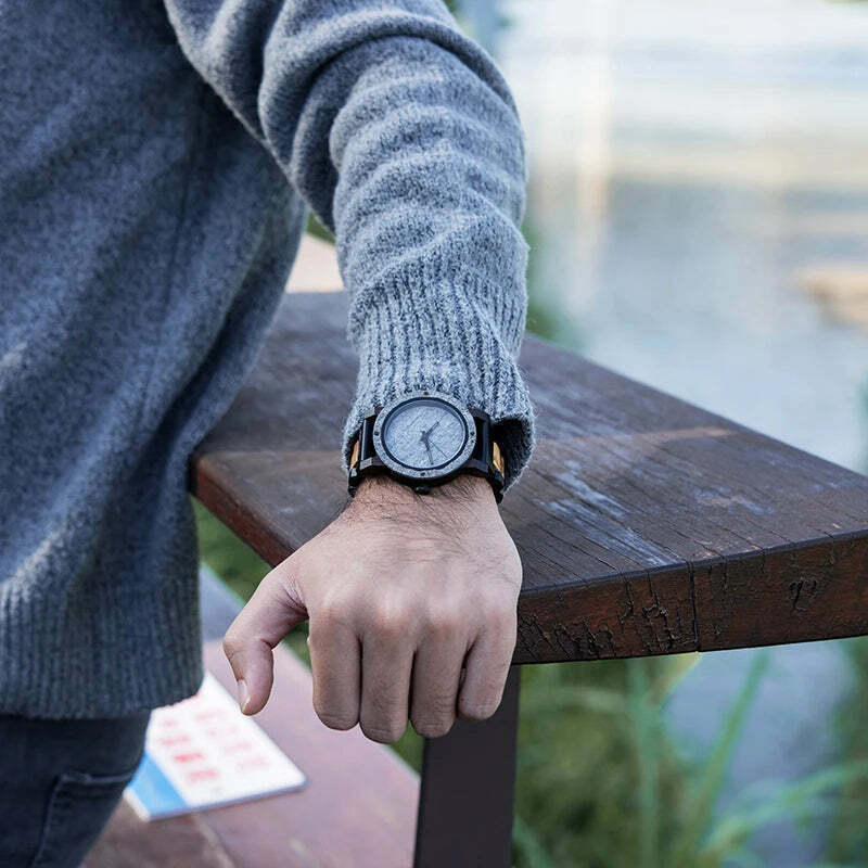 A pulseira de madeira oferece um conforto inigualável e um estilo distinto, tornando este relógio perfeito para homens que valorizam a moda e a sustentabilidade. O mostrador de pedra é um destaque por si só, garantindo que cada peça seja única.