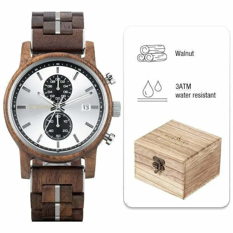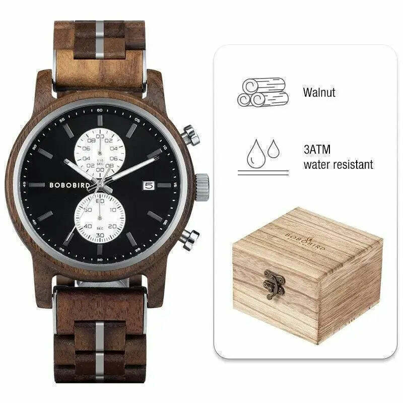 Para o Homem Elegante e Prático! Este relógio de luxo em madeira para homens é a escolha ideal para quem busca um acessório que combine elegância, funcionalidade e um toque de natureza.