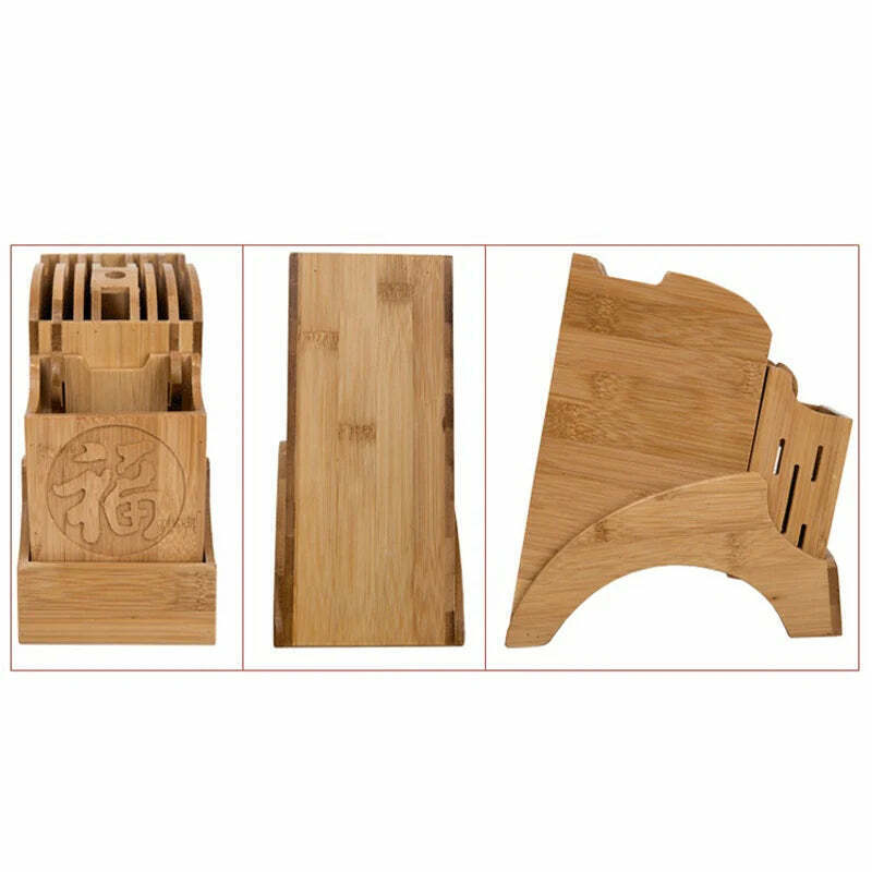 Descrição do Produto: O Suporte de Bambu para Facas de Cozinha é uma solução elegante e sustentável para organizar suas facas. Feito de bambu, um material ecológico e durável, este suporte não só adiciona um toque de elegância natural à sua cozinha, mas também mantém suas facas organizadas e facilmente acessíveis. O design do suporte é prático e seguro, garantindo que as facas sejam armazenadas de forma adequada, preservando a afiação e prolongando a vida útil das lâminas.