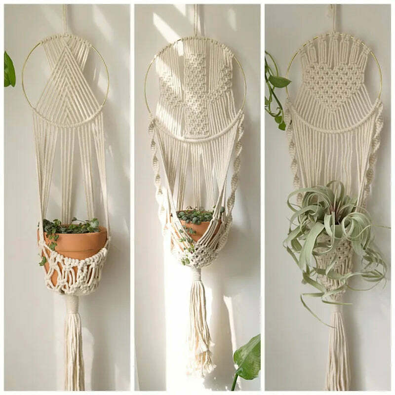 Este suporte artesanal não é apenas uma opção prática para pendurar plantas, mas também uma escolha decorativa e elegante. Feito 100% de algodão, é ideal para adicionar um toque boêmio e natural à sua decoração, seja em casa ou no jardim. Perfeito para pendurar vasos de plantas, este suporte de macramê é uma nova chegada que combina estilo e funcionalidade.
