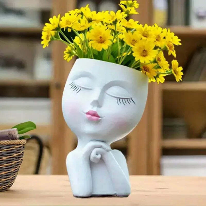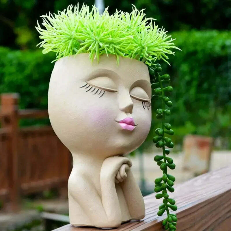 Este vaso de flores com rosto de menina é perfeito para quem busca uma solução criativa e estilosa para decoração de plantas, combinando funcionalidade e um visual único.