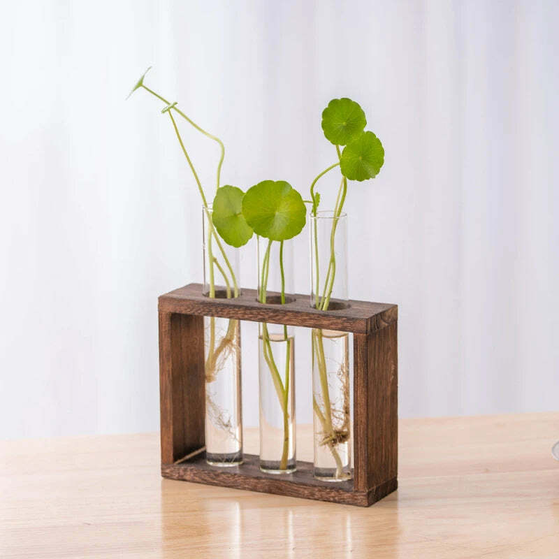 Este Vaso de plantas Hidropônico com Estrutura de Madeira e Tubo de Vidro Transparente não é apenas uma opção prática para jardinagem hidropônica, mas também uma escolha decorativa e elegante. Ideal para decoração de mesas e ambientes internos, este vaso combina uma estrutura de madeira com um tubo de vidro transparente, perfeito para cultivar plantas de bonsai e outras pequenas plantas, adicionando um toque de charme e naturalidade ao seu espaço.